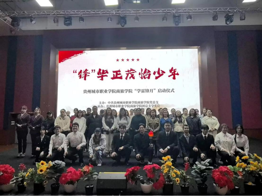 仪式现场氛围热烈而庄重,全体师生齐唱国歌,声声嘹亮凝聚初心;学院党总支书记刘玲登台致辞,寄语师生以雷锋为榜样,争做雷锋精神的传承者、志愿服务的践行者、文明风尚的引领者;学长学姐的暖心寄语视频缓缓播放,字句间传递着雷锋精神的青春接力;火炬传递环节全场瞩目,象征雷锋精神的火炬在师生中手手相传,点亮了青年学子的奉献初心;团总支学生会成员带来《雷锋颂》朗诵,铿锵之声歌颂榜样力量;学生代表领诵青春宣言,铮铮誓言彰显青年担当。最后,学院党总支副书记杨艳红宣布商旅学院2026年“学雷锋月”系列活动正式启动,师生代表共同合影,定格下这份属于青春的温暖瞬间。