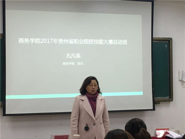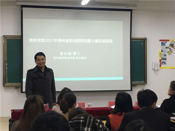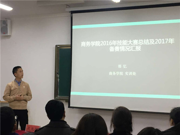 郑忆副处长首先介绍了2016年贵州省职业院校技能大赛商务学院获奖情况,部分获奖证书以及部分获奖选手风采,展示了各个赛区的比赛情况,以及2016年贵州省职业院校技能大赛总结。