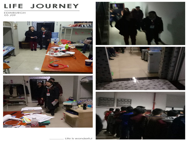当晚22点30分商务学院刘玲书记和学生管理副院长杨艳红带领各班主任进宿舍看望学生并检查学生宿舍安全情况及学生打卡情况。