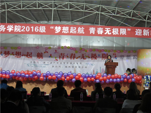 晚会由商务学院孔凡英院长热情洋溢的致辞拉开了晚会的序幕。她说:“大学城就像一片星空,每个人都是独一无二的星星,闪耀着属于自己的光芒。加油吧,2016级新同学!你们都是城市学院上空独一无二的星星。祝福你们!”孔院长深情的演说词使同学们的心里久久不能平静,激动与喜悦萦绕四周。本次演出中舞蹈《CRAZY》show出了大学生的青春与活力;串烧《吉他弹唱》展示出了热情与朝气;活动中由“电子技能大赛”、“优秀干事”及“三好学生”的表彰颁奖仪式将现场气氛推向了高潮;最后由商务学院刘玲书记致闭幕词。