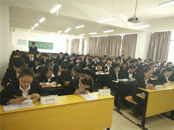 大会第二项,由经济学院团总支副书记樊恩泽老师发言,樊恩泽老师提出学生会既要做好团学工作,又不能落下学习的观点,告诫同学们学生的本职工作是学习,要求学生会成员既要做好学生会工作又不能落下学习成绩。