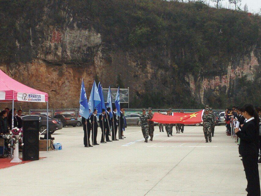 在激动人心的国歌声中,“迎国旗”仪式开始!