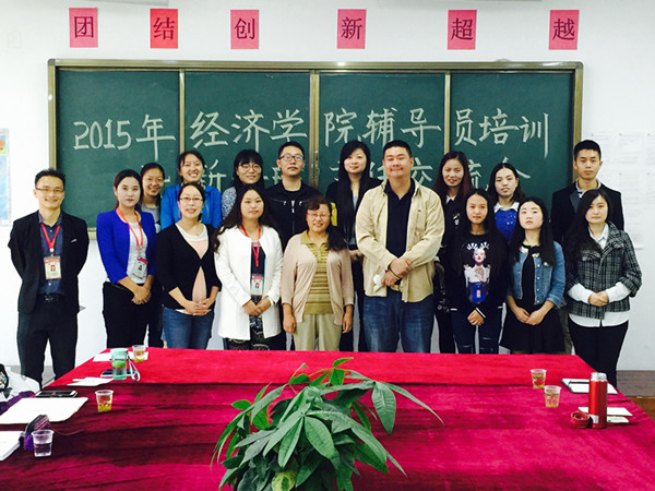 经济学院全体员工上台合影留恋