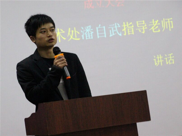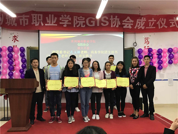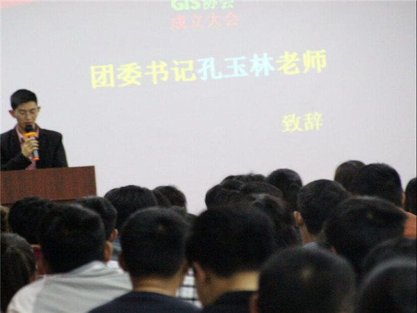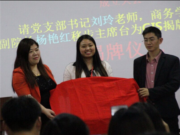 商务学院党支部书记刘玲书记、校团委孔玉林书记、商务学院学生管理副院长杨艳红院长为GIS协会揭牌。拉起手中的红布,主持人喊3、2、1揭牌启动标志着GIS正式成立。