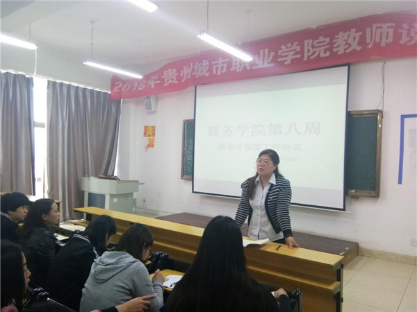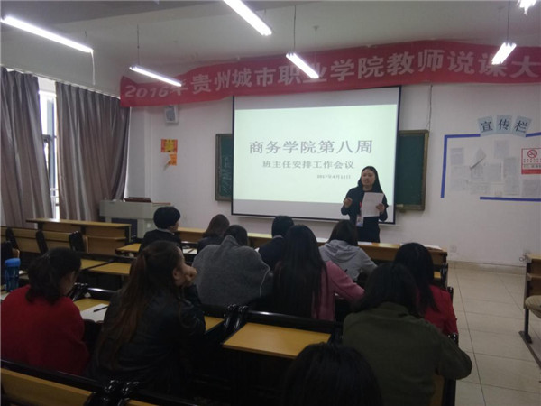 2017年4月12号下午,商务学院学生管理副院长杨艳红组织各班班主任在实训楼408教室召开商务学院学生管理工作会议。商务学院党支部书记刘玲出席并参加了此次会议。