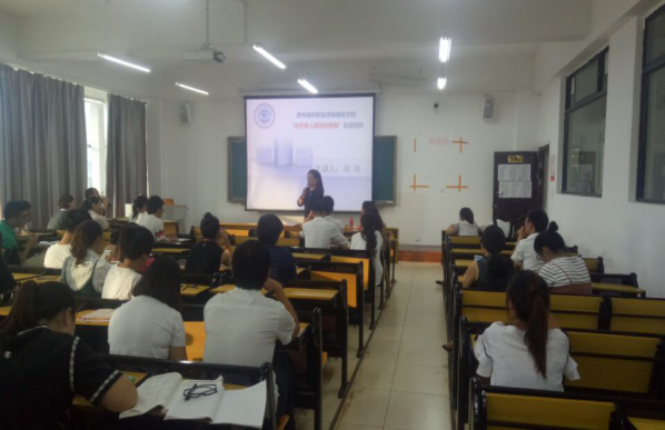 2017年9月19日下午,贵州城市职业学院商务学院党支部在实训楼五楼505教室召开“全员育人”培训大会,由刘玲书记主持,商务学院全体教师及任课教师参加。
