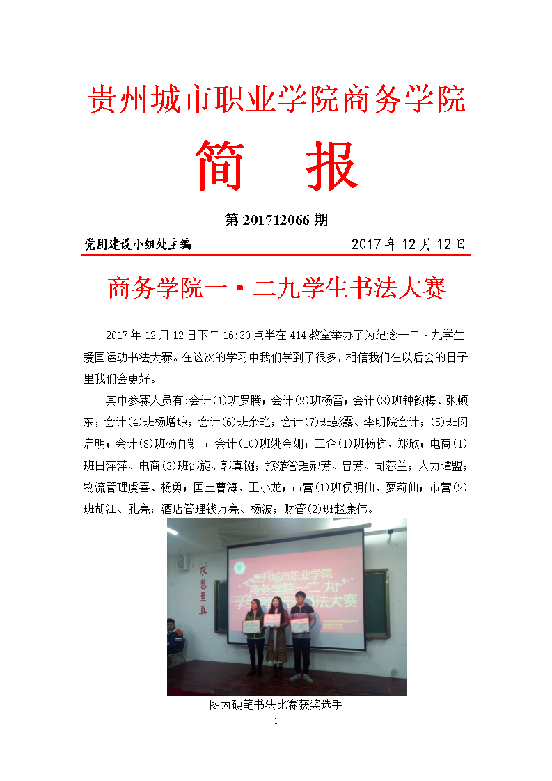 商务学院一·二九学生书法大赛