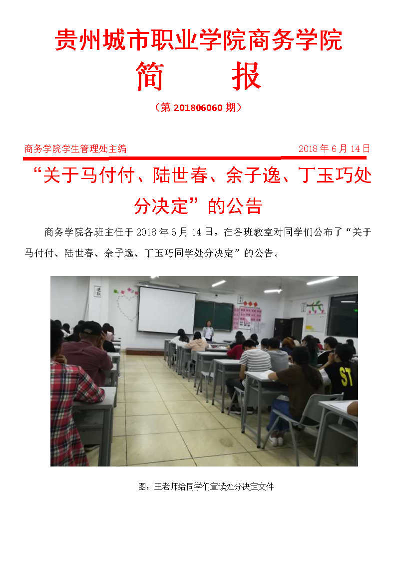 “关于马付付、陆世春、余子逸、丁玉巧处分决定”的公告