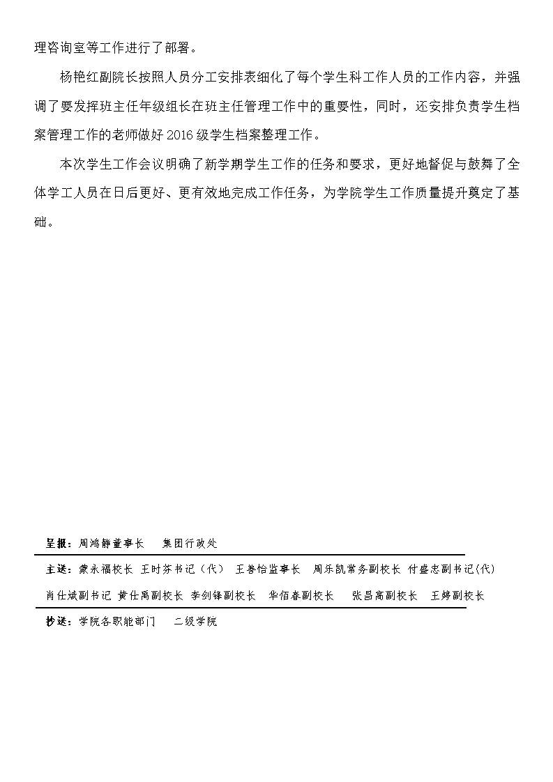 商务学院2018-2019学年度新学期学生科工作第一次会议