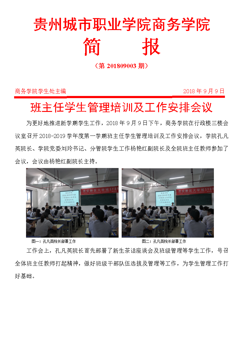 商务学院2018-2019学年度新学期学生科工作第一次会议
