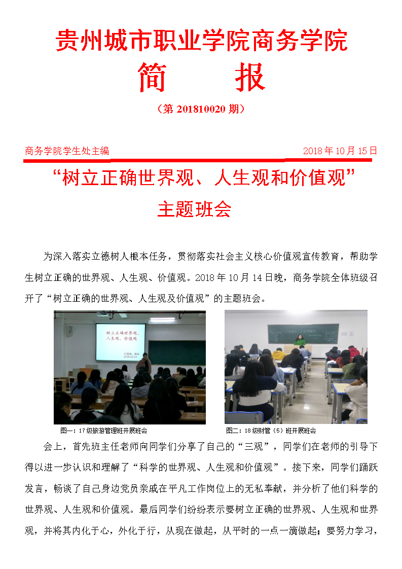 “树立正确世界观、人生观和价值观”主题班会