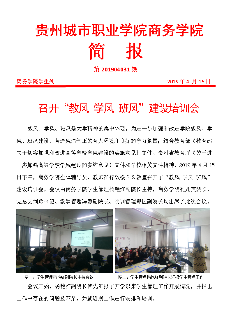 召开“教风、学风、班风”建设培训会