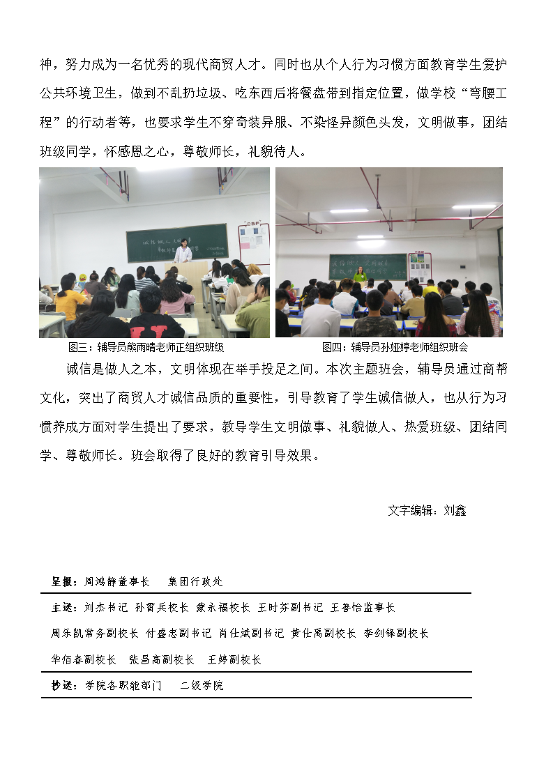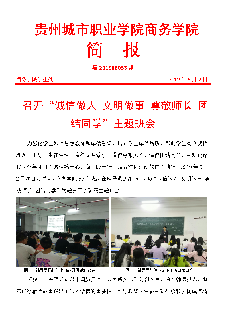 召开“诚信做人 文明做事 尊敬师长 团结同学”主题班会